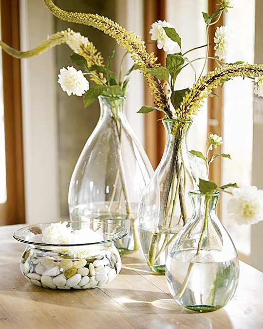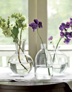 Now, a flower mart or farmer’s market is an amazing place to get different bouquets of flowers. Vases can be purchased from Pier 1 or Cost Plus or Target/Wallmart stores. But if you happen to have a “brown thumb” for this sort of thing, consider working with a florist to pull this off.