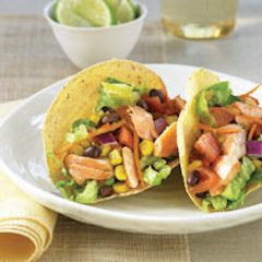 - Spoon salmon into taco shells, dividing evenly; top with corn salsa. Garnish with lettuce.