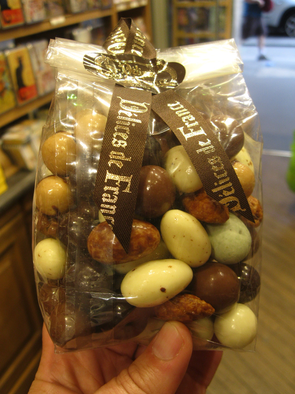 - A bag of chocolate covered dried fruits and nuts