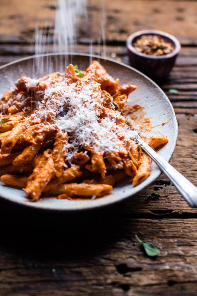 Even in the hottest weather I crave pasta, and this recipe has all of my favorites ingredients right down to the vodka. Now if only I can find a replacement for the heavy cream and I may just bypass the crockpot suggestion and go right to a pan saute: