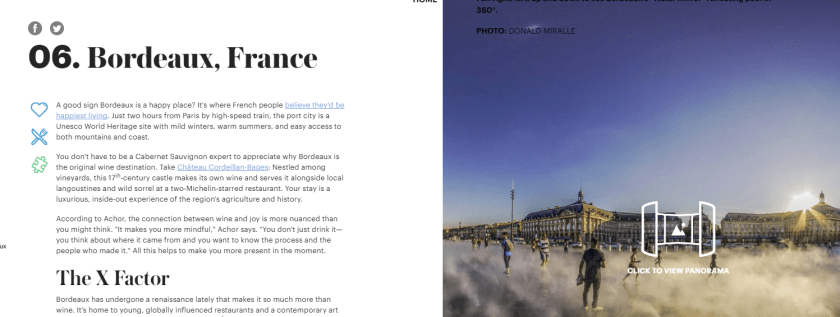 Check out this cool online travel Front of Book Stories (magazine term) – short and to the point travel blurbs and virtual/pano views