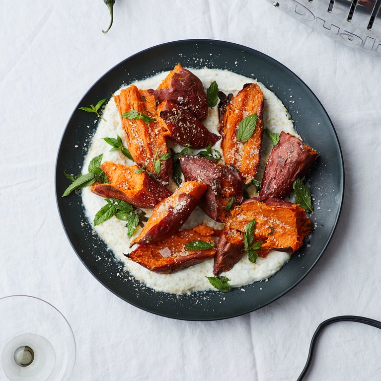 roasted-sweet-potatoes-with-chile-yogurt-and-mint