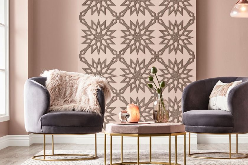 The idea of a retro dining space, a breakfast nook perhaps and the dusty blush color palette suggested