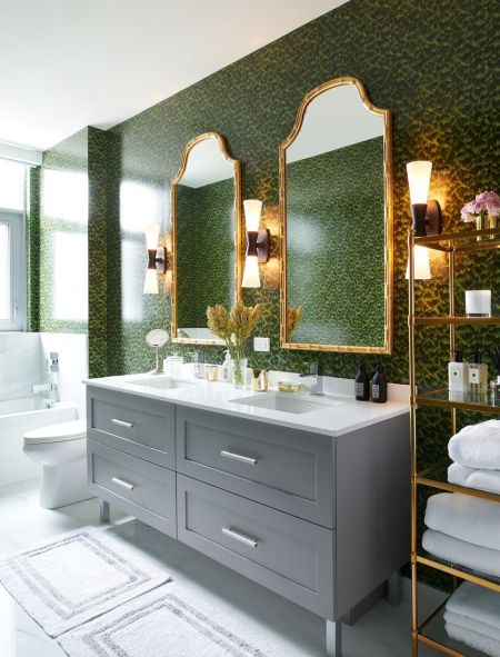 Believe it or not a year ago, this was the color of a guest bathroom, including the tile work, and paintings. I can’t believe this is back in trend for 2019