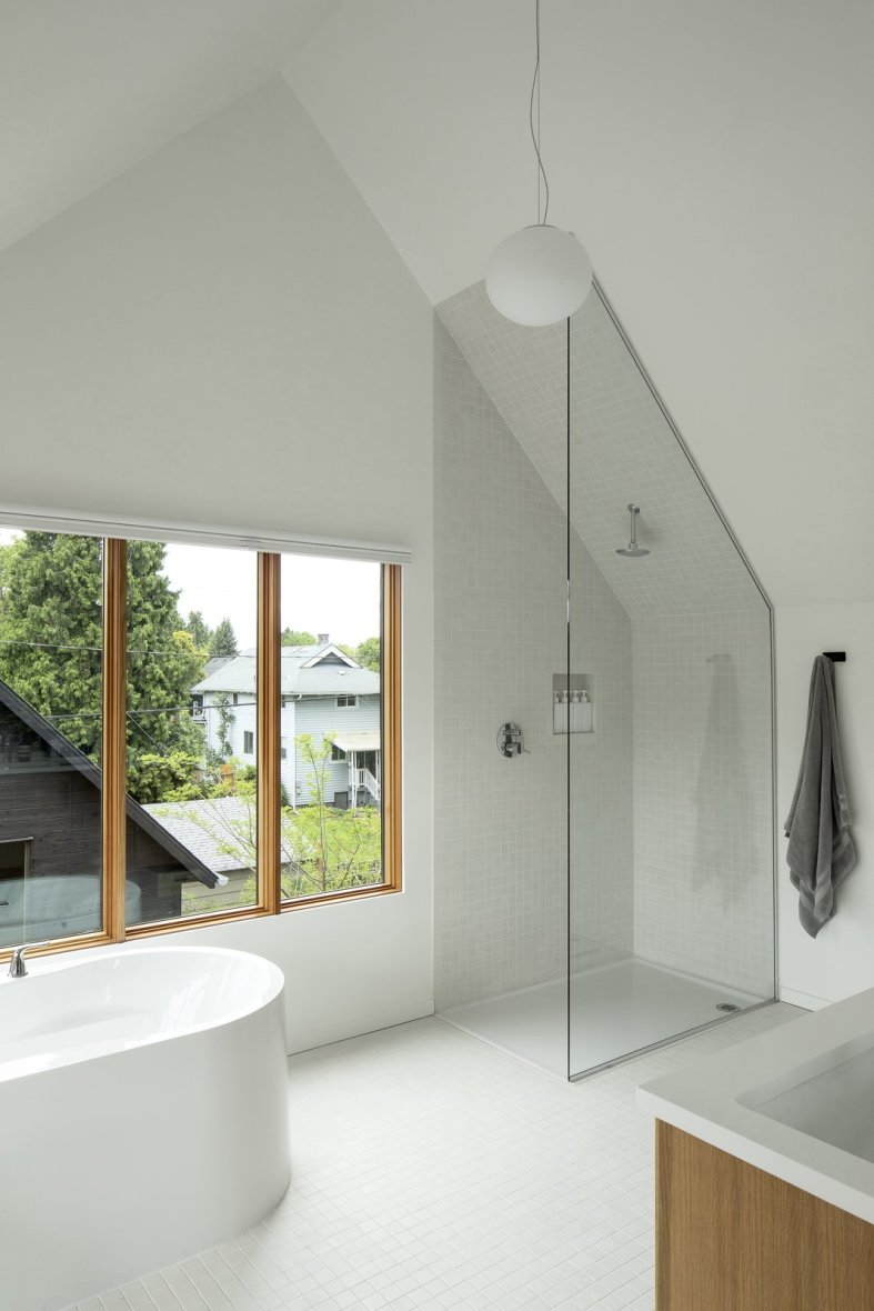 May 29, 2019 the-third-floor-master-bathroom-at-slender-house-enjoys-a-vaulted-ceiling-that-helps-create-a-sense-of-volume-and-spaciousnesseven-while-showering