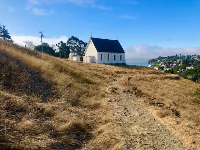 We drove up hill first, in search of a trail and the old Saint Hillary Chapel – which naturally google maps had trouble getting us to – due to the dozen winding roads leading to the dead ends, suggesting we walk the rest of the way. Which would have been nice if we were able to actually park in the very private neighborhoods. So after thirty minutes we decided to give up and proceed to the waterfront and sure enough I saw the chapel and we followed a path to the small parking lot and enjoyed the best of views