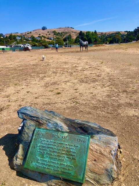 Close up of a statue of Blackie where I loved hearing a mother explain to her three year old daughter where Blackie was