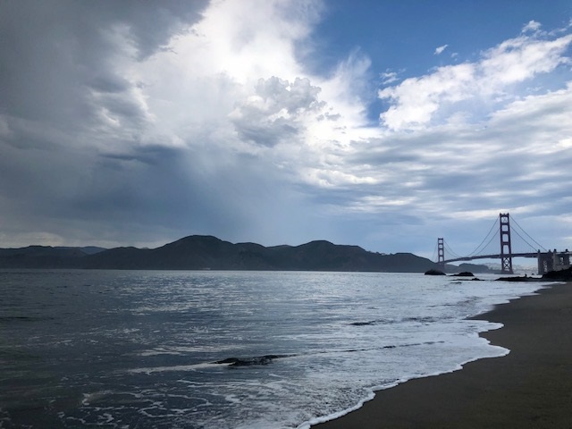 In the morning, although light showers were in order, we decided to head to Baker Beach and take in the storm – weird and risky for sure – but we did it anyway. Not sure what compelled us, me mostly, but I felt the need to be by the coast.