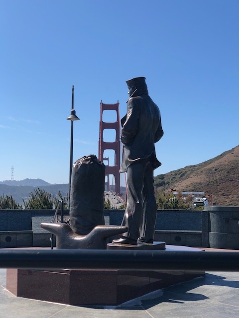 And stood on the other side along with a statue of a merchant marine