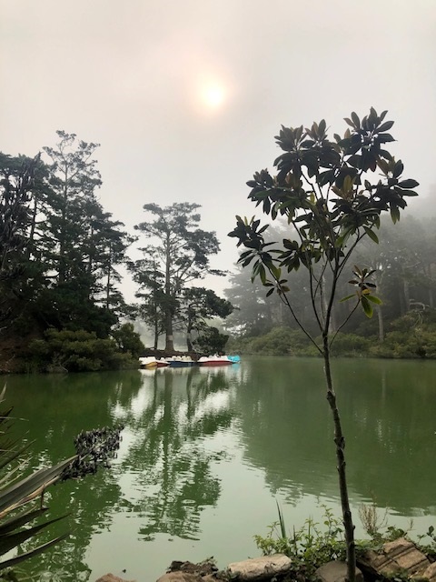 On Sunday, we decided to stay in San Francisco and walk through Golden Gate Park, since all the warnings about the fires all around, road closures and more. We figured the walk might do us good, in particular to help clear all the negative thinking. So we walked on, veering to a path, which I’ve often wondered about, as to where it leads. Discovering that it was a shortcut to Stowe Lake. A place we normally took a longer way to get to.